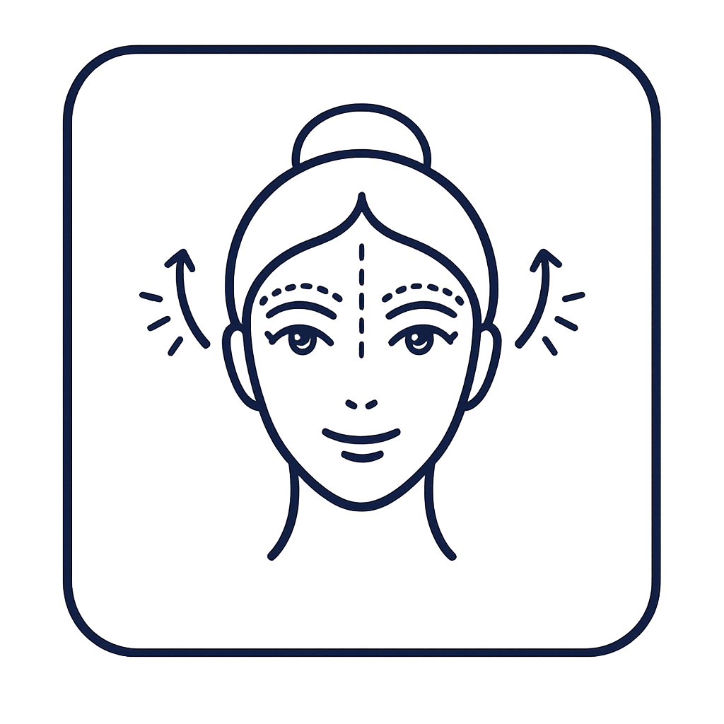 A brow lift elevates the forehead and eyebrows, reducing heaviness and softening forehead creases to restore a naturally refreshed, alert appearance — without an overdone or "surprised" look.