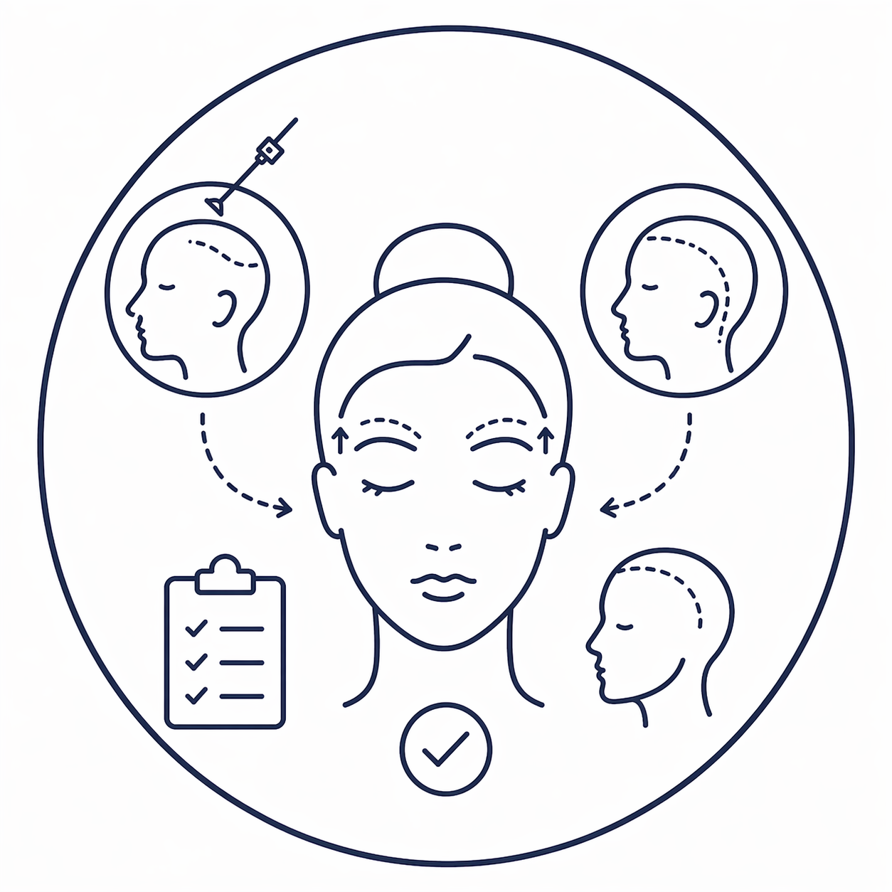 Good candidates are healthy adults — men and women — wishing to correct brow descent, forehead lines, or heaviness around the eyes without altering their natural expression. For some patients, combining a brow lift with upper eyelid surgery provides the most complete and balanced result.