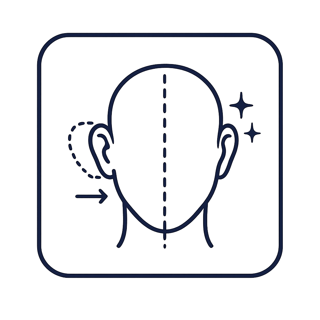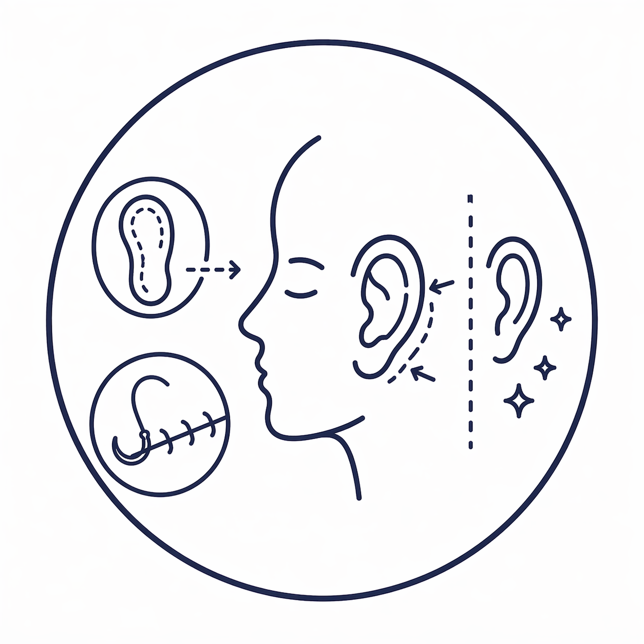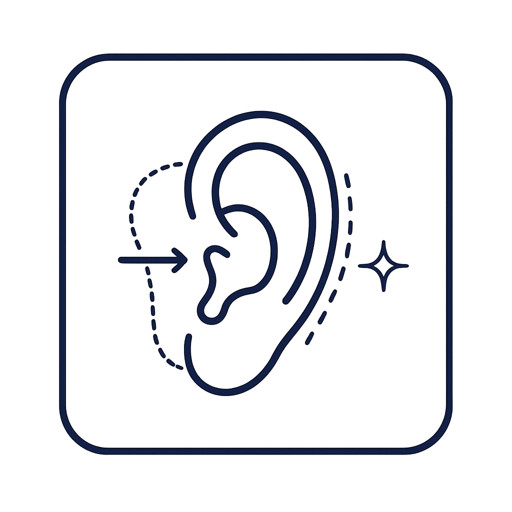 Otoplasty repositions and reshapes the ears through a small incision hidden behind the ear, securing cartilage with fine permanent sutures to achieve a natural, balanced result.